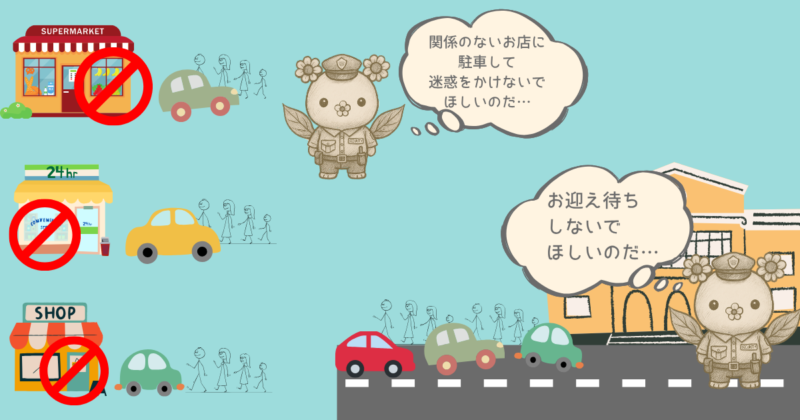「会場前での乗り降り」や「利用予定のない周辺施設への無断駐車」、